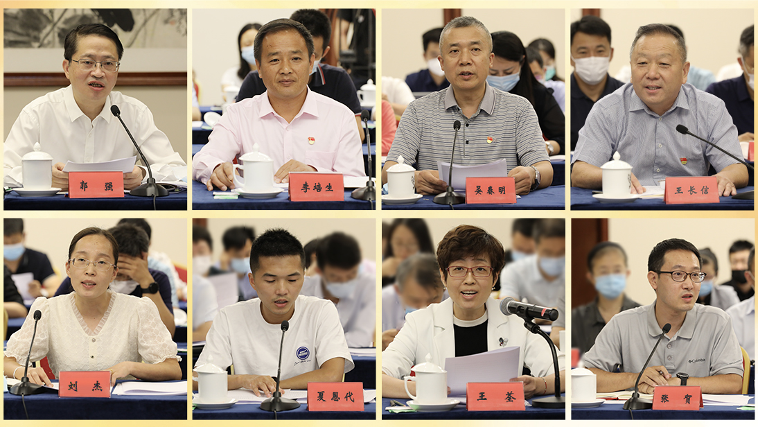 座談會(huì)發(fā)言照片:安徽省委常委、宣傳部部長郭強(qiáng),“中國好人”代表李培生、晏春明、王長信(上排從左至右);“中國好人”代表劉杰、夏恩代,“中國好醫(yī)生中國好護(hù)士”代表王荃,媒體記者代表張賀(下排從左至右)。(劉鯤鵬 攝)