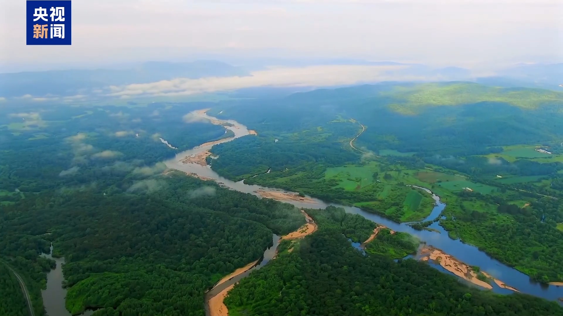 從嶺巔俯瞰,額爾古納河清澈的秋水正流淌于蜿蜒的河道間,宛如一條碧玉綢帶。河水奔涌,孕育出聞名世界的呼倫貝爾大草原。風吹草低,牛羊成群,茂盛的草毯一直鋪展到與藍天白云相接的天際線。