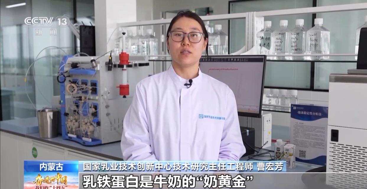 國家乳業(yè)技術(shù)創(chuàng)新中心技術(shù)研究主任工程師 曹宏芳:乳鐵蛋白是牛奶的“奶黃金”,但因技術(shù)與裝備受限,過去我國幾乎全部依賴進(jìn)口?!笆奈濉逼陂g,我們成功研發(fā)出全球首款常溫活性乳鐵蛋白有機(jī)純牛奶,打破了西方的壟斷。