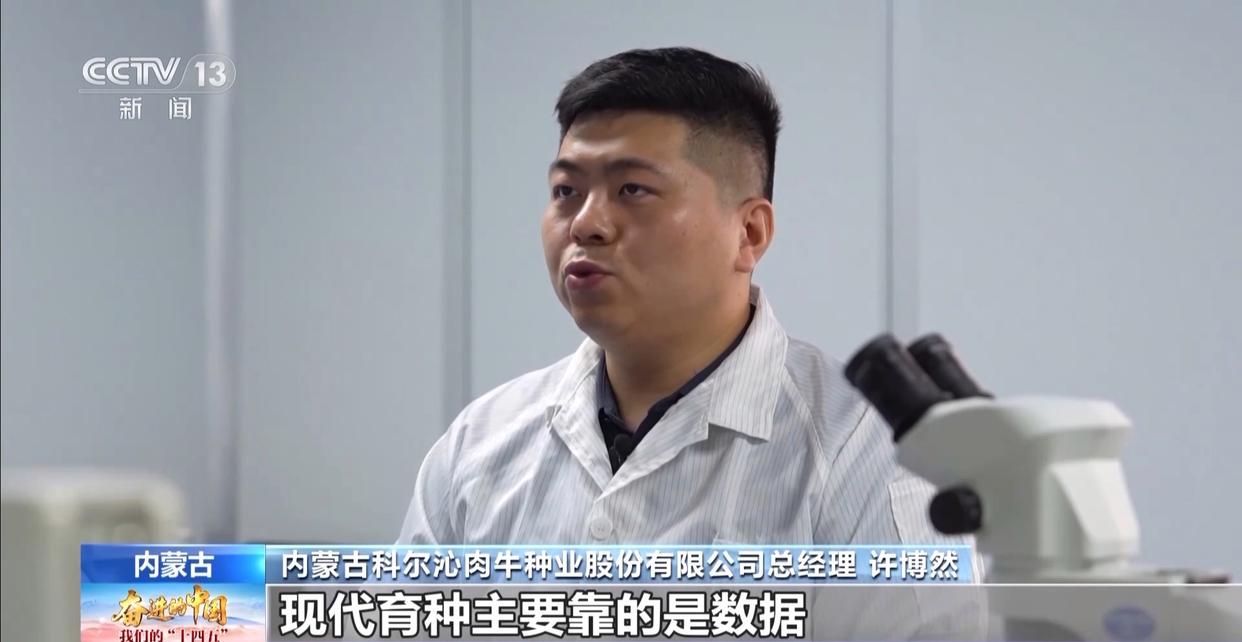 內(nèi)蒙古科爾沁肉牛種業(yè)股份有限公司總經(jīng)理 許博然:現(xiàn)代育種主要靠的是數(shù)據(jù),借助基因組選擇技術(shù)、大數(shù)據(jù)分析等現(xiàn)代技術(shù),可以精準(zhǔn)定位并控制優(yōu)良性狀的基因,使育種過程變得更高效。