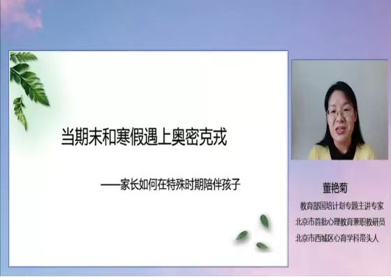 本次講座由教育廳邀請(qǐng)教育部國(guó)培計(jì)劃專題主講專家、北京市首批心理教育兼職教研員、北京市西城區(qū)心育學(xué)科帶頭人董艷菊老師主講,與大家分享在“待陽(yáng)”和“陽(yáng)了”的焦慮中,家長(zhǎng)如何陪伴孩子。