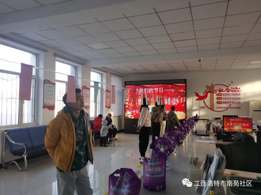 當工作人員宣布活動正式開始后,大家爭先恐后地猜謎語,有的居民反應迅速,很快便猜出謎底,有的居民看著謎面陷入沉思,用心思考著謎底。人們三五成群地聚在一起,討論著謎面,猜測著謎底,猜對答案的居民領到了一份份小禮品。歡聲笑語和喜慶溫馨的節(jié)日氛圍充斥著整個大廳。