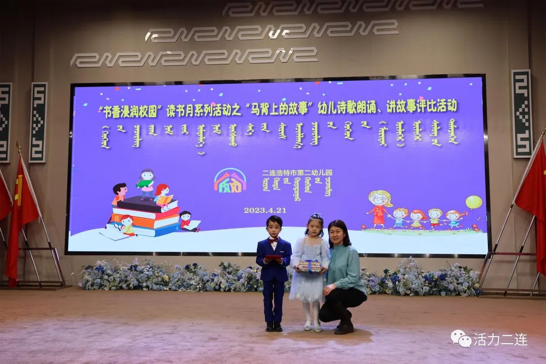 在“世界讀書日”即將到來之際,4月21日,市第二幼兒園舉辦“書香浸潤校園”讀書月系列活動之“馬背上的故事”幼兒詩歌朗誦、講故事評比活動。